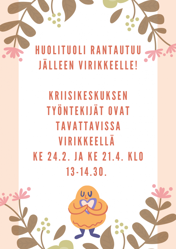 Huolituoli rantautuu Virikkeelle ke 24.2. ja ke 21.4. klo 13-14.30