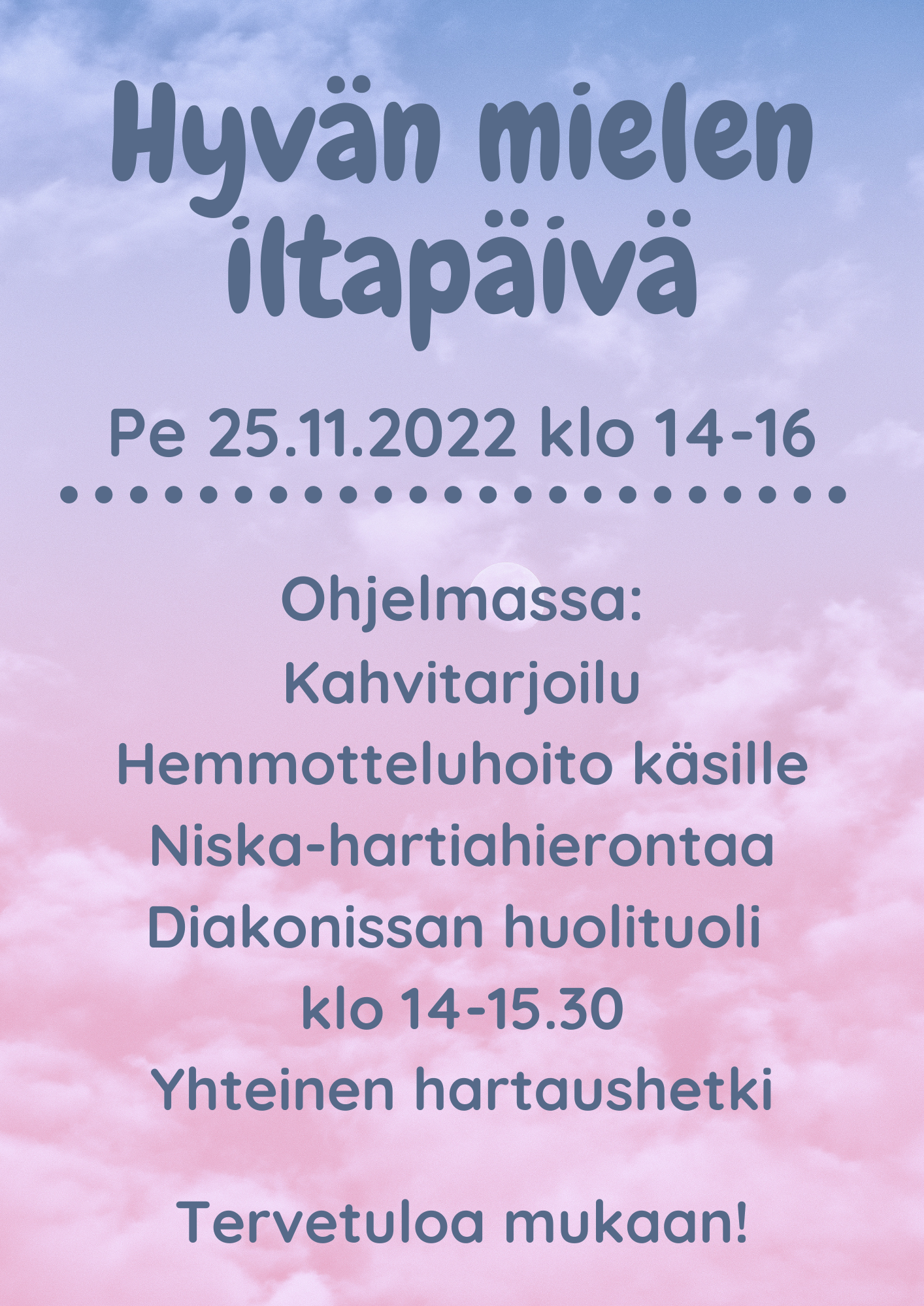 Hyvän mielen iltapäivä pe 25.11. klo 14-16