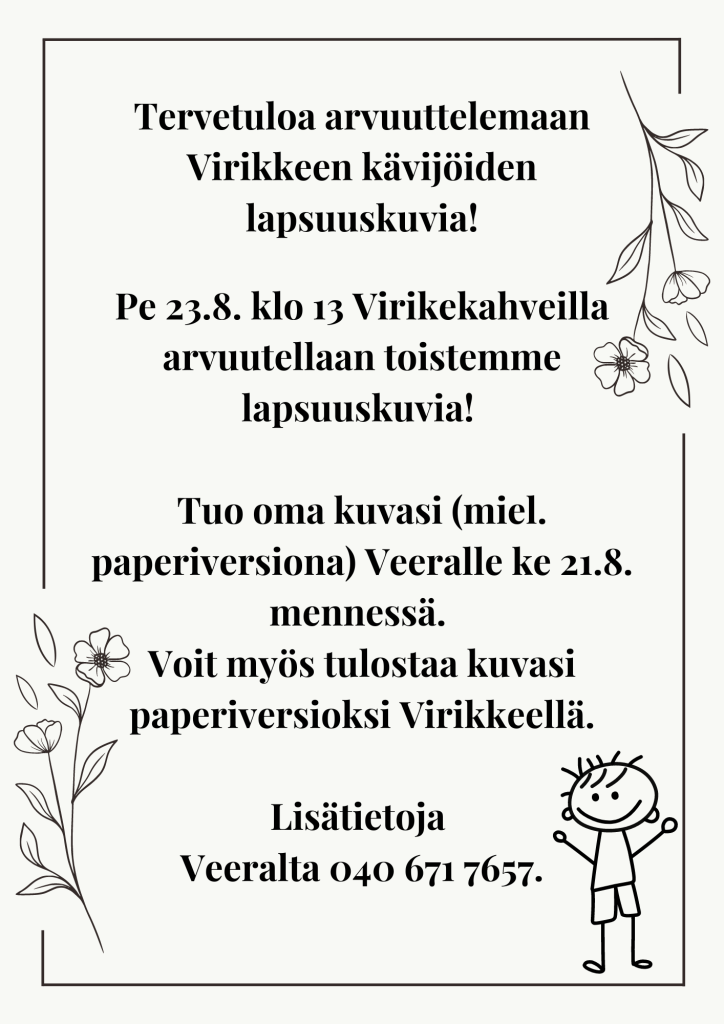 Lapsuuskuvia Virikekahveilla pe 23.8.