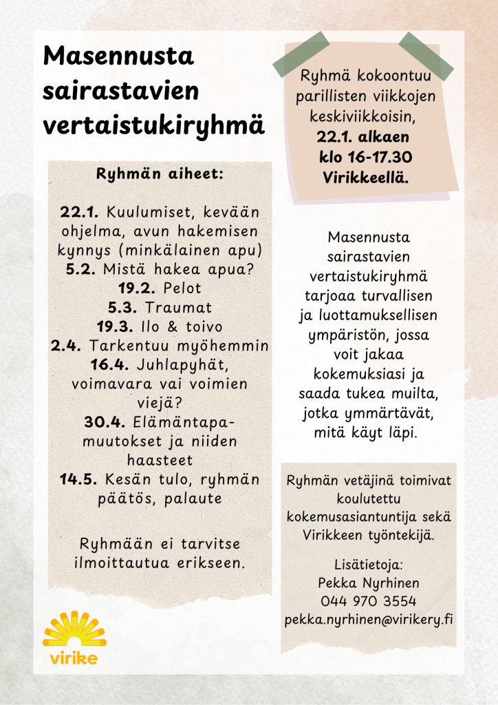 Masennusta sairastavien vertaistukiryhmä keväällä -25