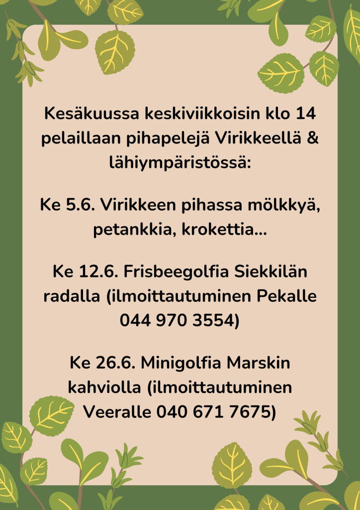 Pihapelejä kesäkuussa